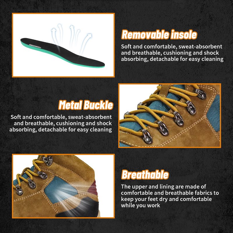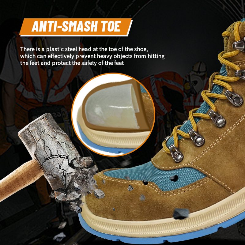 มีหัวเหล็กพลาสติกที่ปลายรองเท้าซึ่งสามารถป้องกันไม่ให้ของหนักกระแทกเท้าได้อย่างมีประสิทธิภาพและปกป้องความปลอดภัยของเท้า